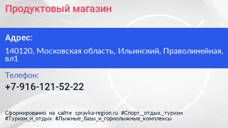 Продуктовый магазин по адресу 140120, Московская область, Ильинский, Праволинейная, вл1 в дальнейшем Организация, размещена в следующих категориях:
