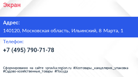 Экран по адресу 140120, Московская область, Ильинский, 8 Марта, 1 в дальнейшем Организация, размещена в следующих категориях: