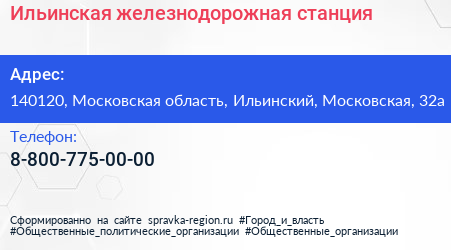 Ильинская, железнодорожная станция по адресу 140120, Московская область, Ильинский, Московская, 32а в дальнейшем Организация, размещена в следующих категориях: