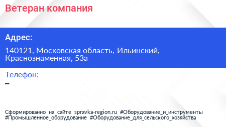 Ветеран, компания по адресу 140121, Московская область, Ильинский, Краснознаменная, 53а в дальнейшем Организация, размещена в следующих категориях: