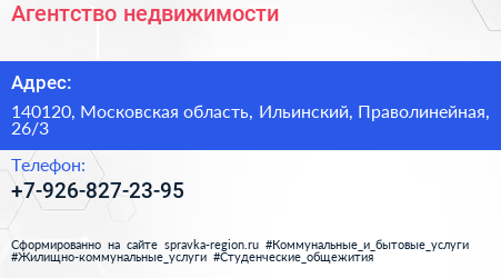 Агентство недвижимости по адресу 140120, Московская область, Ильинский, Праволинейная, 26/3 в дальнейшем Организация, размещена в следующих категориях: