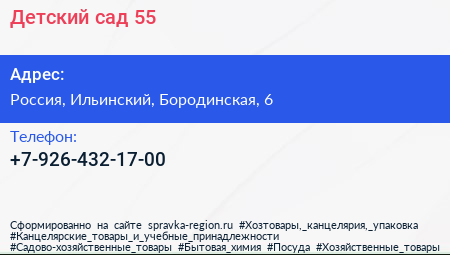 Детский сад №55 по адресу 9, Бородинская улица, коттеджный посёлок Прозоровское-Голицыно, Кратово, Раменский городской округ, Московская область, Центральный федеральный округ, 140130, Россия в дальнейшем Организация, размещена в следующих категориях:
