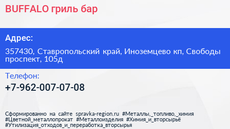 BUFFALO, гриль-бар по адресу 357430, Ставропольский край, Иноземцево кп, Свободы проспект, 105д в дальнейшем Организация, размещена в следующих категориях:
