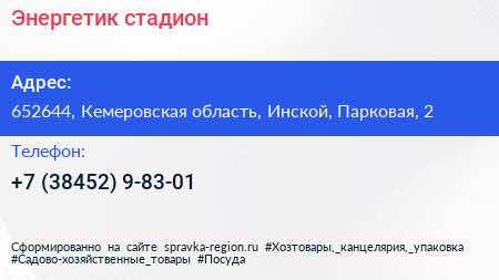 Энергетик, стадион по адресу 652644, Кемеровская область, Инской, Парковая, 2 в дальнейшем Организация, размещена в следующих категориях:
