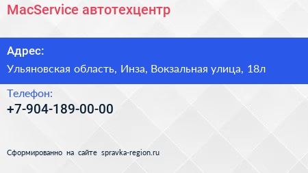 MacService, автотехцентр по адресу Ульяновская область, Инза, Вокзальная улица, 18л в дальнейшем Организация, размещена в следующих категориях: