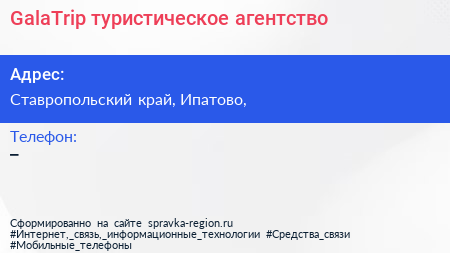 GalaTrip, туристическое агентство по адресу Ставропольский край, Ипатово, в дальнейшем Организация, размещена в следующих категориях: