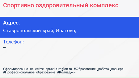 Спортивно-оздоровительный комплекс по адресу Ставропольский край, Ипатово, в дальнейшем Организация, размещена в следующих категориях: