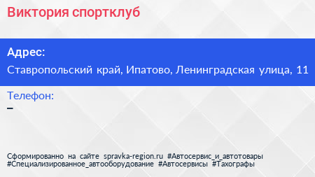 Виктория, спортклуб по адресу Ставропольский край, Ипатово, Ленинградская улица, 11 в дальнейшем Организация, размещена в следующих категориях: