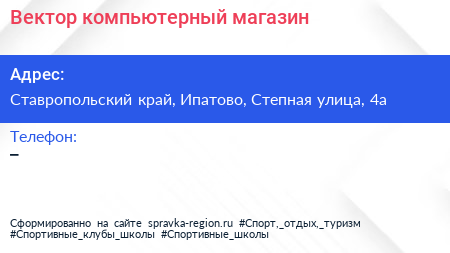 Вектор, компьютерный магазин по адресу Ставропольский край, Ипатово, Степная улица, 4а в дальнейшем Организация, размещена в следующих категориях: