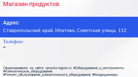 Магазин продуктов по адресу Ставропольский край, Ипатово, Советская улица, 112 в дальнейшем Организация, размещена в следующих категориях: