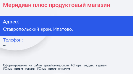 Меридиан плюс, продуктовый магазин по адресу Ставропольский край, Ипатово, в дальнейшем Организация, размещена в следующих категориях: