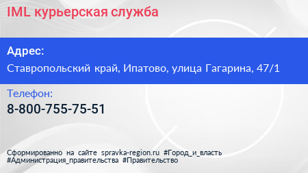 IML, курьерская служба по адресу Ставропольский край, Ипатово, улица Гагарина, 47/1 в дальнейшем Организация, размещена в следующих категориях: