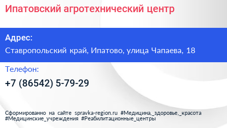 Ипатовский агротехнический центр по адресу Ставропольский край, Ипатово, улица Чапаева, 18 в дальнейшем Организация, размещена в следующих категориях: