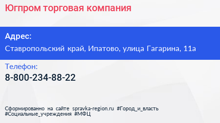 Югпром, торговая компания по адресу Ставропольский край, Ипатово, улица Гагарина, 11а в дальнейшем Организация, размещена в следующих категориях: