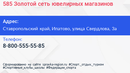 585 Золотой, сеть ювелирных магазинов по адресу Ставропольский край, Ипатово, улица Свердлова, 3а в дальнейшем Организация, размещена в следующих категориях: