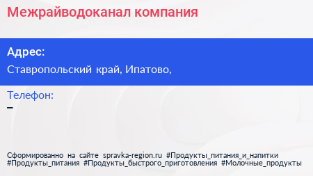 Межрайводоканал, компания по адресу Ставропольский край, Ипатово, в дальнейшем Организация, размещена в следующих категориях: