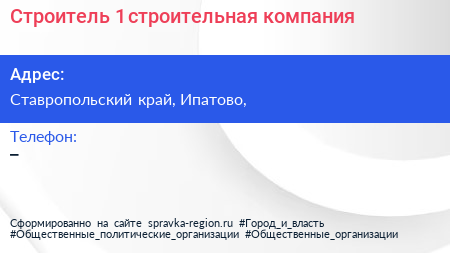 Строитель №1, строительная компания по адресу Ставропольский край, Ипатово, в дальнейшем Организация, размещена в следующих категориях:
