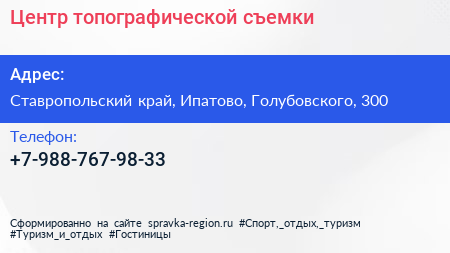 Центр топографической съемки по адресу Ставропольский край, Ипатово, Голубовского, 300 в дальнейшем Организация, размещена в следующих категориях: