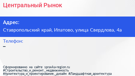 Центральный Рынок по адресу Ставропольский край, Ипатово, улица Свердлова, 4а в дальнейшем Организация, размещена в следующих категориях: