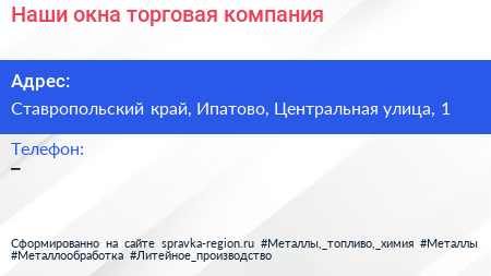 Наши окна, торговая компания по адресу Ставропольский край, Ипатово, Центральная улица, 1 в дальнейшем Организация, размещена в следующих категориях: