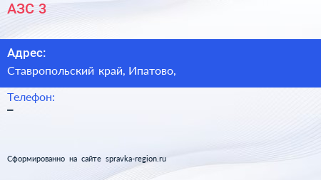 АЗС №3 по адресу Ставропольский край, Ипатово, в дальнейшем Организация, размещена в следующих категориях: