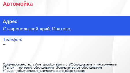 Автомойка по адресу Ставропольский край, Ипатово, в дальнейшем Организация, размещена в следующих категориях: