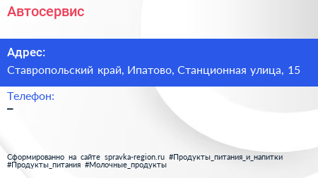 Автосервис по адресу Ставропольский край, Ипатово, Станционная улица, 15 в дальнейшем Организация, размещена в следующих категориях: