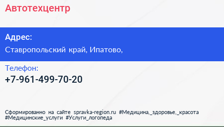 Автотехцентр по адресу Ставропольский край, Ипатово, в дальнейшем Организация, размещена в следующих категориях: