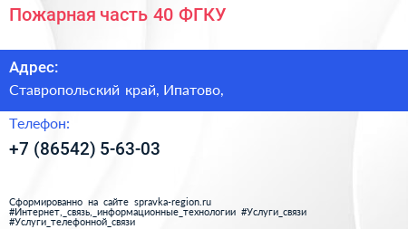 Пожарная часть №40, ФГКУ по адресу Ставропольский край, Ипатово, в дальнейшем Организация, размещена в следующих категориях: