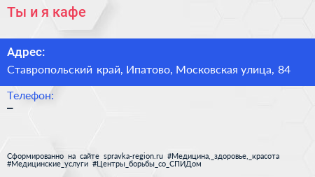 Ты и я, кафе по адресу Ставропольский край, Ипатово, Московская улица, 84 в дальнейшем Организация, размещена в следующих категориях: