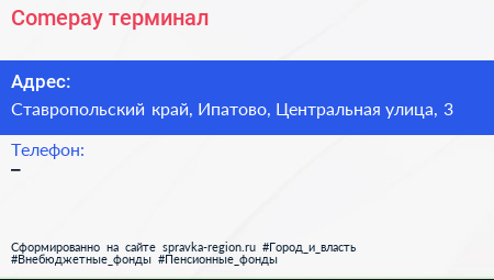 Comepay, терминал по адресу Ставропольский край, Ипатово, Центральная улица, 3 в дальнейшем Организация, размещена в следующих категориях: