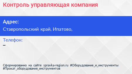 Контроль, управляющая компания по адресу Ставропольский край, Ипатово, в дальнейшем Организация, размещена в следующих категориях: