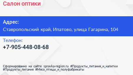 Салон оптики по адресу Ставропольский край, Ипатово, улица Гагарина, 104 в дальнейшем Организация, размещена в следующих категориях: