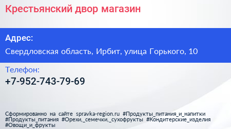 Крестьянский двор, магазин по адресу Свердловская область, Ирбит, улица Горького, 10 в дальнейшем Организация, размещена в следующих категориях: