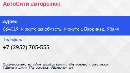 АвтоСити, авторынок по адресу 664019, Иркутская область, Иркутск, Баррикад, 98а/4 в дальнейшем Организация, размещена в следующих категориях: