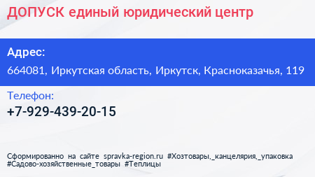 ДОПУСК, единый юридический центр по адресу 664081, Иркутская область, Иркутск, Красноказачья, 119 в дальнейшем Организация, размещена в следующих категориях: