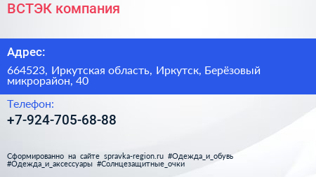 ВСТЭК, компания по адресу 664523, Иркутская область, Иркутск, Берёзовый микрорайон, 40 в дальнейшем Организация, размещена в следующих категориях: