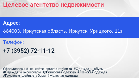 Целевое, агентство недвижимости по адресу 664003, Иркутская область, Иркутск, Урицкого, 11а в дальнейшем Организация, размещена в следующих категориях: