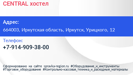 CENTRAL, хостел по адресу 664003, Иркутская область, Иркутск, Урицкого, 12 в дальнейшем Организация, размещена в следующих категориях:
