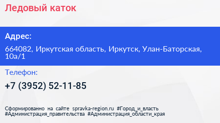 Ледовый каток по адресу 664082, Иркутская область, Иркутск, Улан-Баторская, 10а/1 в дальнейшем Организация, размещена в следующих категориях:
