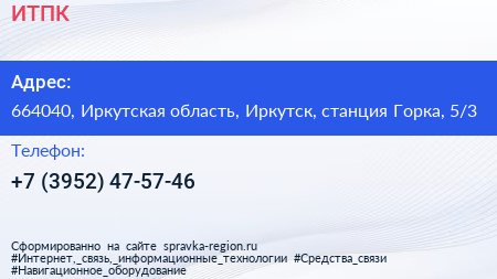 ИТПК по адресу 664040, Иркутская область, Иркутск, станция Горка, 5/3 в дальнейшем Организация, размещена в следующих категориях: