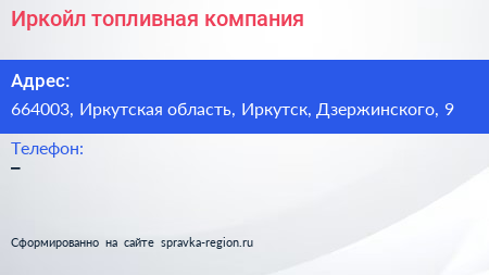 Иркойл, топливная компания по адресу 664003, Иркутская область, Иркутск, Дзержинского, 9 в дальнейшем Организация, размещена в следующих категориях:
