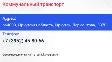 Коммунальный транспорт по адресу 664033, Иркутская область, Иркутск, Лермонтова, 337Б в дальнейшем Организация, размещена в следующих категориях:
