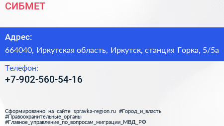 СИБМЕТ по адресу 664040, Иркутская область, Иркутск, станция Горка, 5/5а в дальнейшем Организация, размещена в следующих категориях: