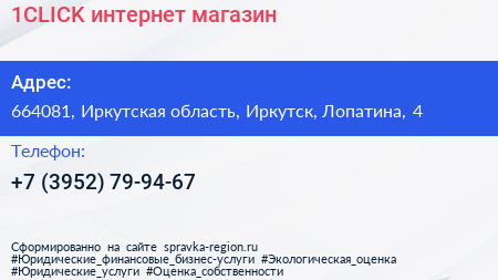 1CLICK, интернет-магазин по адресу 664081, Иркутская область, Иркутск, Лопатина, 4 в дальнейшем Организация, размещена в следующих категориях: