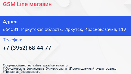 GSM Line, магазин по адресу 664081, Иркутская область, Иркутск, Красноказачья, 119 в дальнейшем Организация, размещена в следующих категориях: