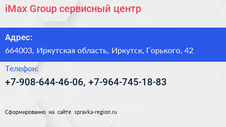 iMax-Group, сервисный центр по адресу 664003, Иркутская область, Иркутск, Горького, 42 в дальнейшем Организация, размещена в следующих категориях: