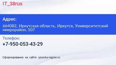 IT_38rus по адресу 664082, Иркутская область, Иркутск, Университетский микрорайон, 107 в дальнейшем Организация, размещена в следующих категориях: