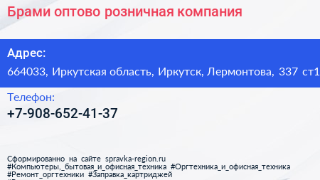 Брами, оптово-розничная компания по адресу 664033, Иркутская область, Иркутск, Лермонтова, 337 ст1 в дальнейшем Организация, размещена в следующих категориях: