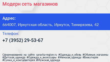 Модерн, сеть магазинов по адресу 664007, Иркутская область, Иркутск, Тимирязева, 42 в дальнейшем Организация, размещена в следующих категориях: